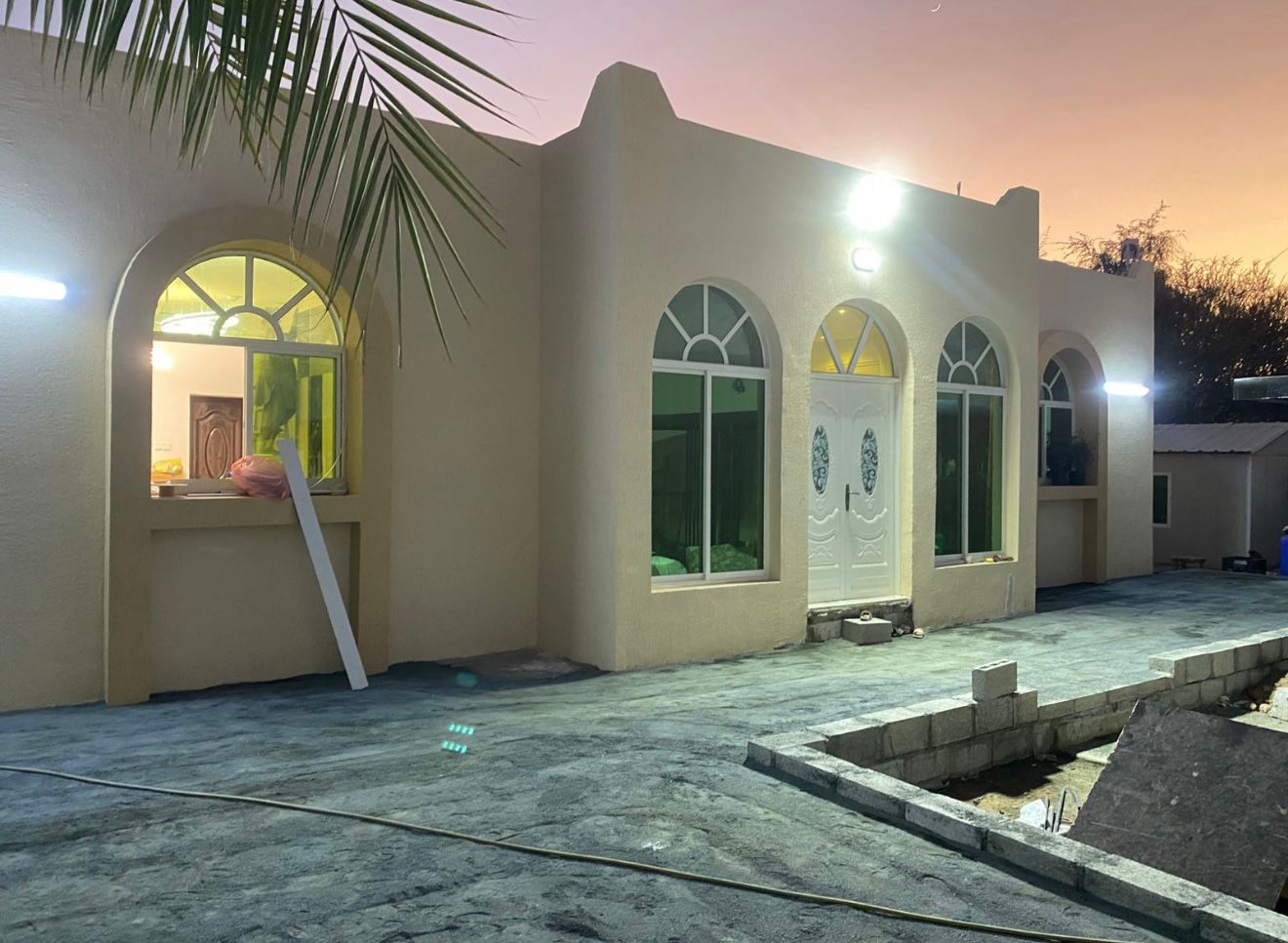 تنفيذ أعمال صيانة وترميم لمسكن قائم مقدمة كـ منحة من دائرة الإسكان في الشارقة، وتشمل الأعمال إصلاح التشققات، وتجديد الدهانات،